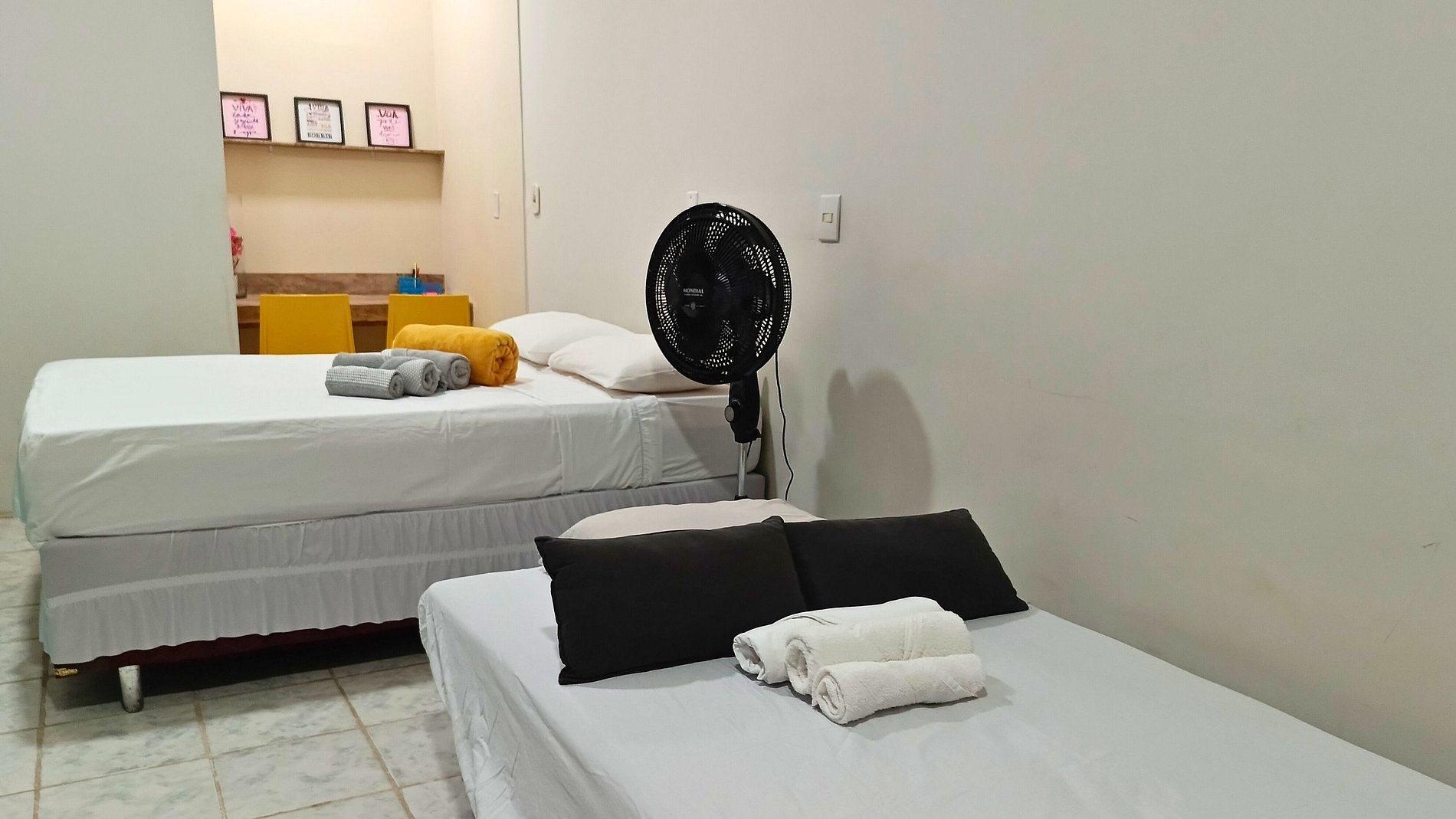 O espaço é exclusivo e não compartilhado: O apartamento dispõe de um quarto confortável com cama de casal, cama de solteiro, ar-condicionado e armário. A sala de estar é equipada com sofá, TV e Wi-Fi rápido, ideal para relaxar ou trabalhar. A cozinha é totalmente equipada com geladeira, fogão e utensílios necessários para preparar suas refeições. Uma taxa extra é cobrada para o uso contínuo do ar-condicionado (consulte as regras da casa para mais detalhes).